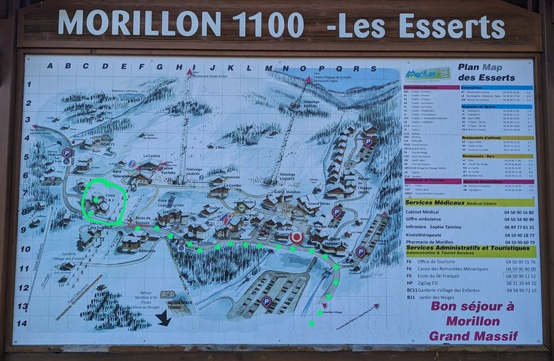 Vous passez sur le petit pont qui enjambe la piste. Le poste de secours est; derrière vous. Le prochain bâtiment à droite comprend le Criou 1 et le Criou 2. Vous êtes arrivés.